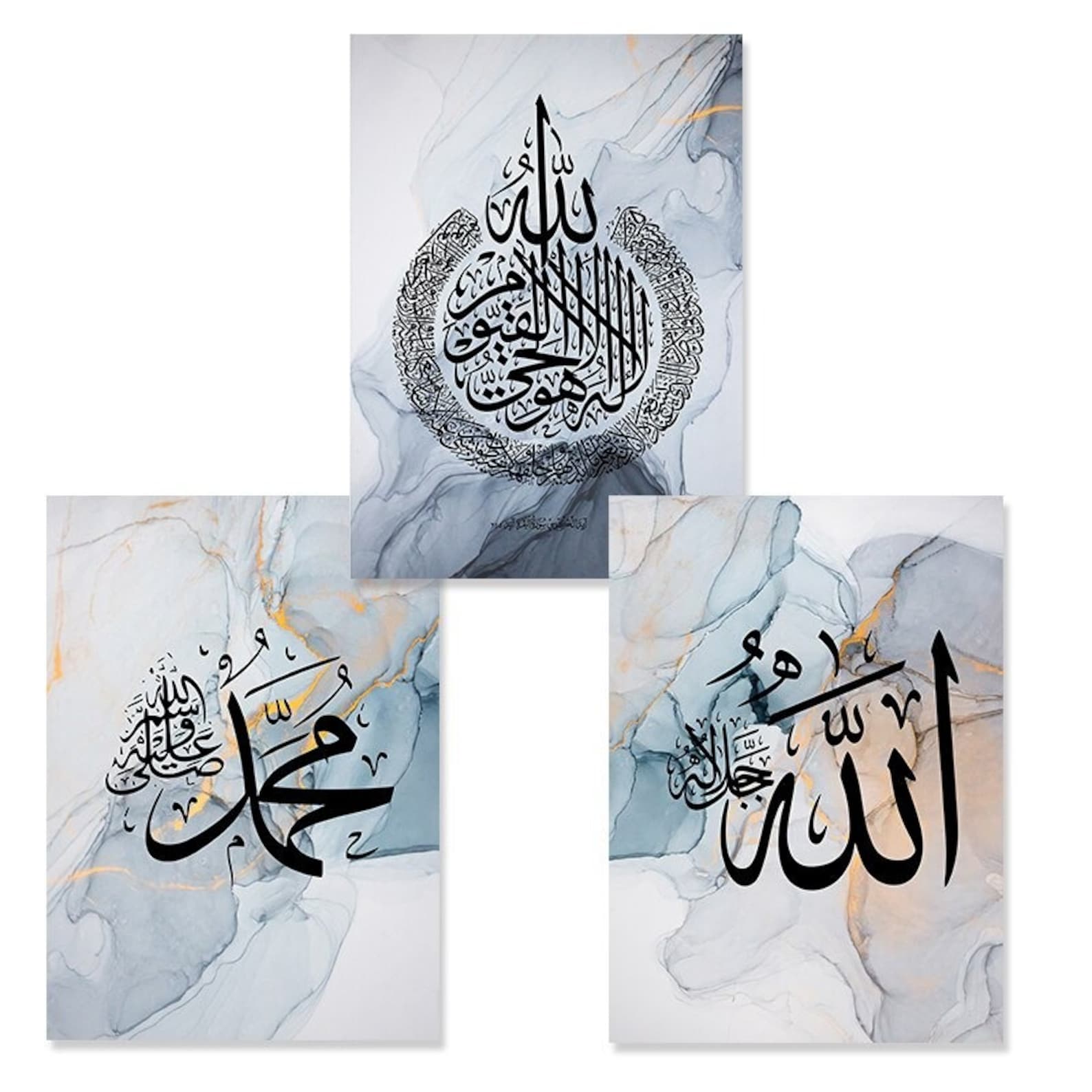 3-Piece Marble Blue Islamic Wall Art