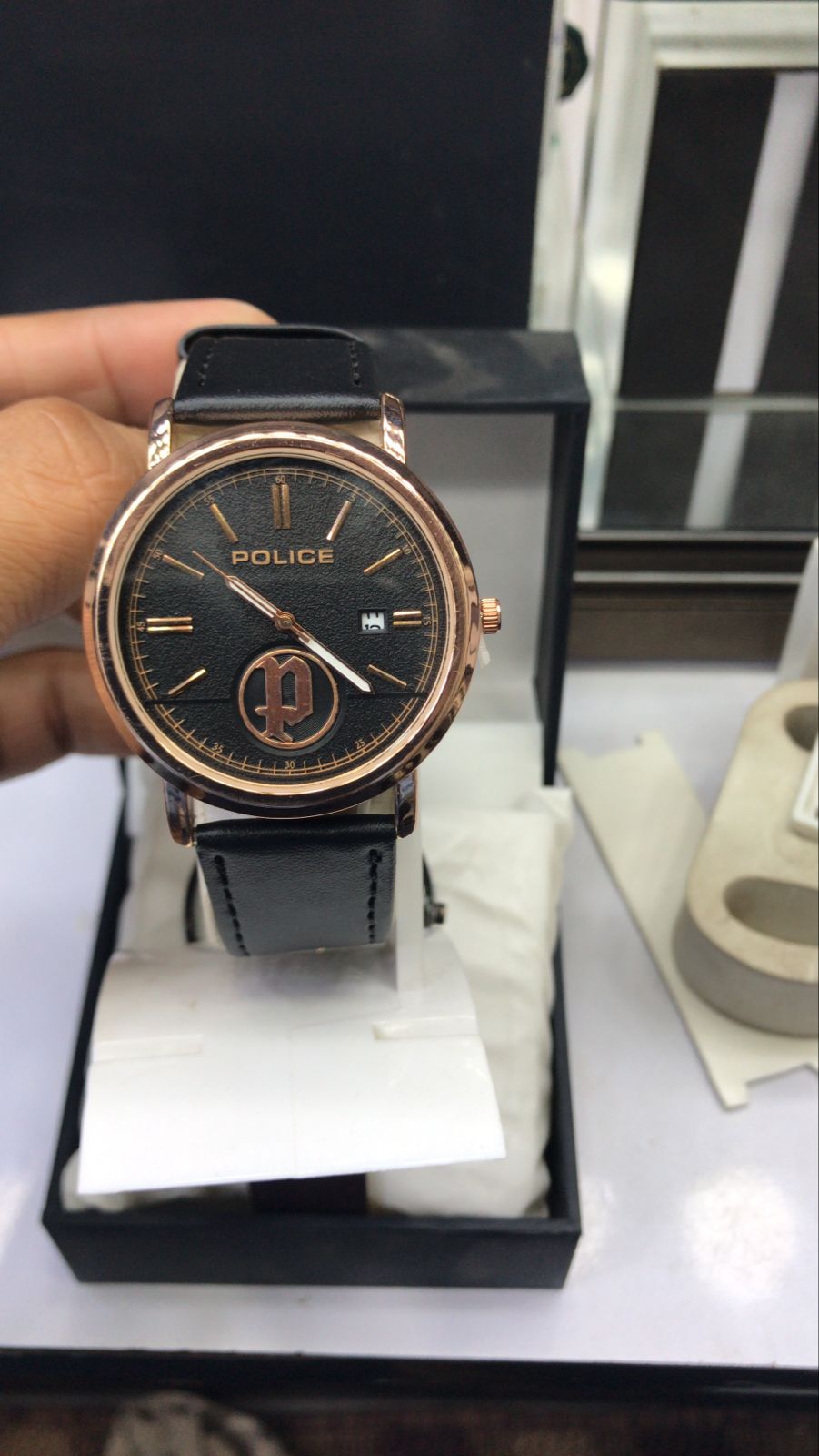 Police Watch – Elegant Leather Strap, Date Display, Quartz Movement, Water Resistant (Black Dial & Strap).